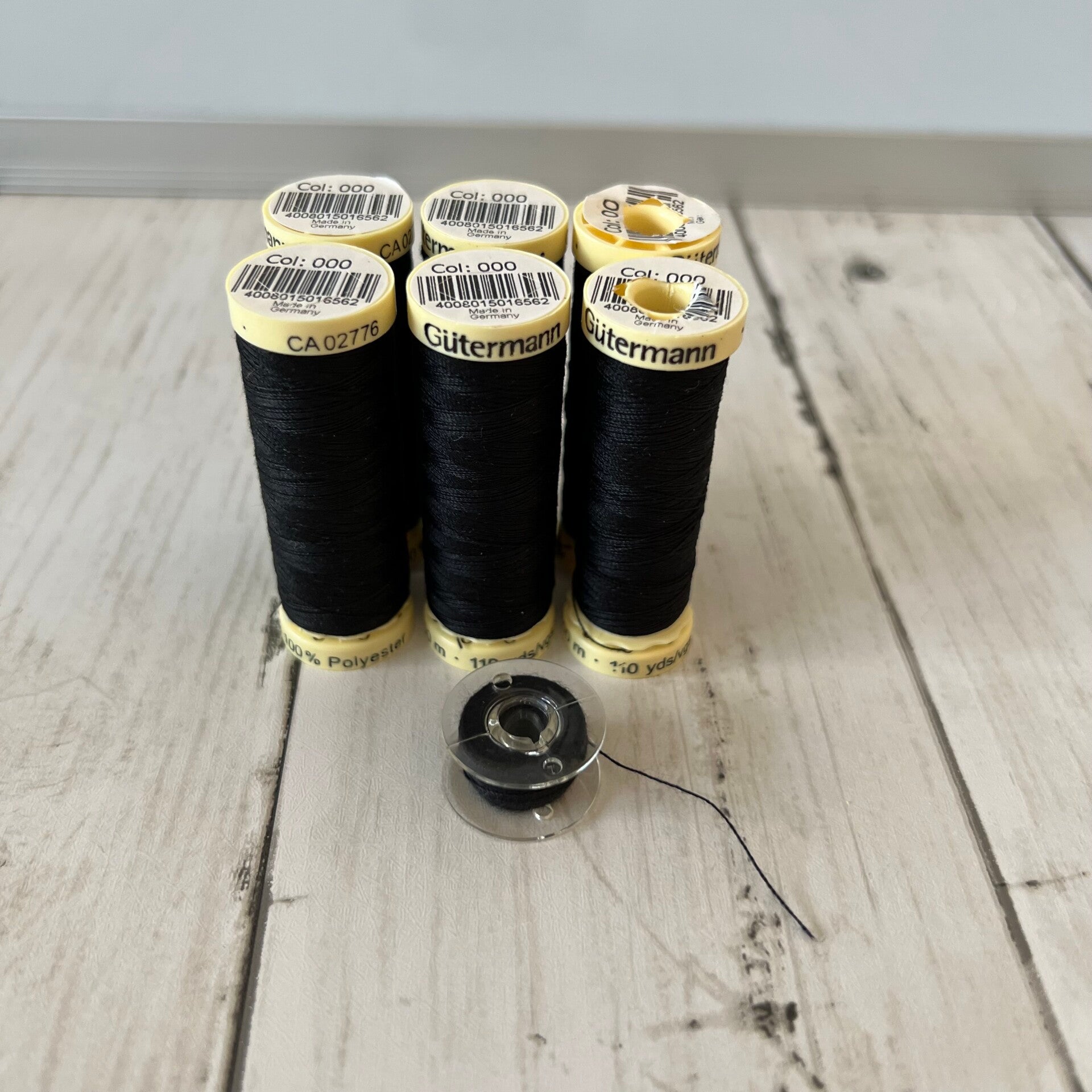 Nähgarn und Spulen